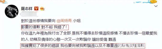 在微博中,周扬青声称自己是一位“时间管理专家”,并与多名女性有过交往。公众舆论瞬间哗然,他的所有通告都被暂停了,代言全部消失,综艺节目的镜头也被剪掉了。在那一段日子里,他选择将自己锁在家中,关闭了手机,并每天专注于两件事情:与母亲共进晚餐和在地下室尽情舞蹈。